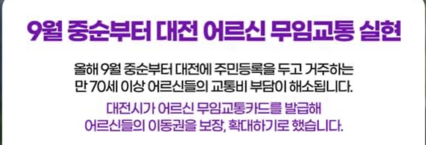 ▲월 중 대전시에 주민등록을 두고 거주하는 만 70세 이상 어르신 대상으로 안내문을 배부할 예정입니다. 해당 어르신은 카.드 발급 신청장소에서 어르신 무임교통카.드를 신청해서 이용하면 됩니다.