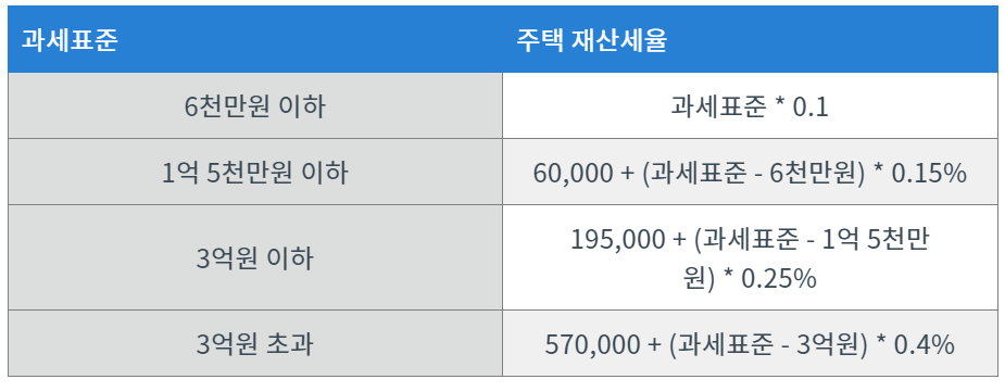 2) 재산세의 세율은 0.1 ~ 0.2%, 주택의 경우 0.1%, 건물의 경우 0.2%의 세율이 적용됩니다.